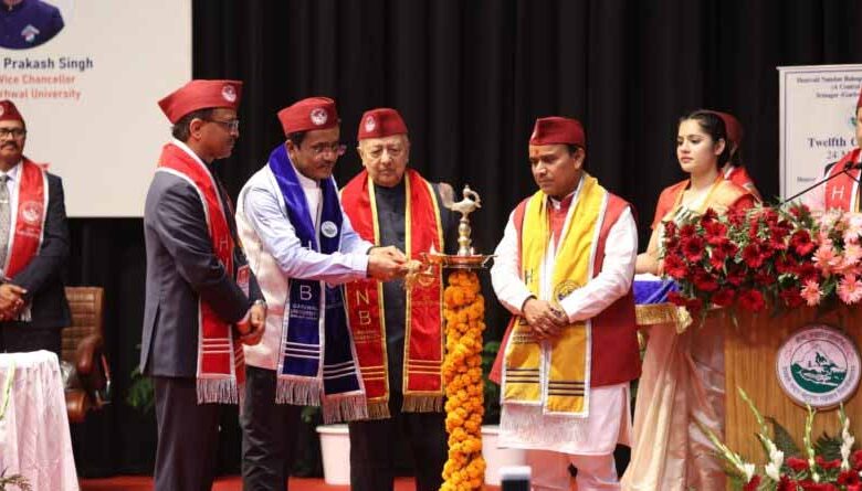 श्रीनगर। हेमवती नंदन बहुगुणा गढ़वाल विश्वविद्यालय का 12वां दीक्षांत समारोह मंगलवार को धूमधाम से सम्पन्न हुआ। विश्वविद्यालय के कुलाधिपति डॉ योगेन्द्र नारायण की अध्यक्षता में उच्च शिक्षा मंत्री धन सिंह रावत ने दीप प्रज्ज्वल के साथ दीक्षांत समारोह का उद्घाटन किया।