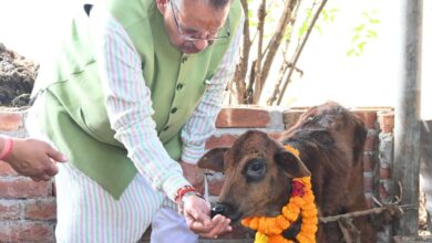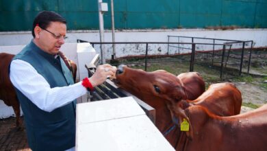 सीएम धामी ने गोवर्धन पूजा के अवसर पर मुख्यमंत्री आवास स्थित गौशाला में गौमाता की पूजा-अर्चना की