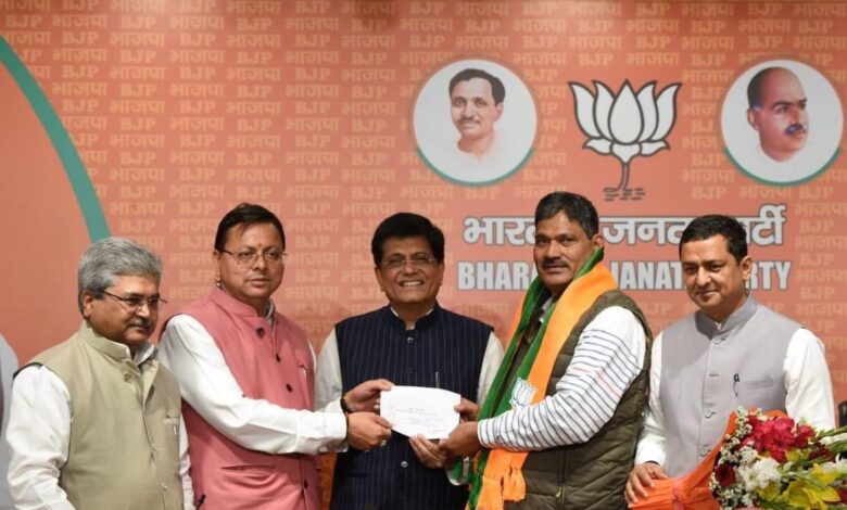 देहरादून। उत्तराखंड में नेताओं का कांग्रेस छोड़कर भाजपा में शामिल होने का दौर लगातार जारी है। रविवार को कांग्रेस को दो बड़े झटके लगे। बदरीनाथ विधायक व पूर्व मंत्री राजेंद्र सिंह भंडारी व टिहरी के पूर्व विधायक धन सिंह नेगी ने कांग्रेस छोड़ दी है। बदरीनाथ क्षेत्र से कांग्रेस विधायक राजेंद्र भंडारी ने दिल्ली में भाजपा ज्वाइन कर ली है। सीएम पुष्कर सिंह धामी, मंत्री पीयूष गोयल, पौड़ी सीट से भाजपा उम्मीदवार अनिल बलूनी और उत्तराखंड भाजपा प्रभारी दुष्यंत गौतम ने उन्हें पार्टी की सदस्यता दिलाई।