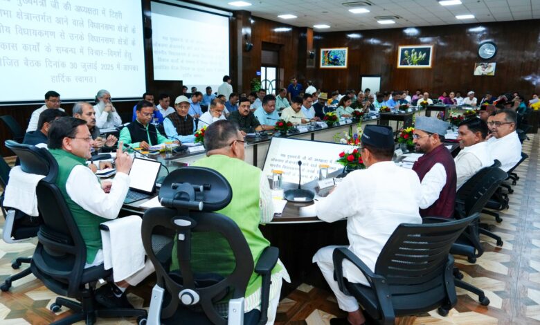 देहरादून। टिहरी लोकसभा क्षेत्र के अंतर्गत आने वाली विधानसभा सीटों की मुख्यमंत्री घोषणाओं और अन्य कार्यों की समीक्षा के दौरान मुख्यमंत्री ने निर्देश दिए कि विधायकों द्वारा उठायी गई जनसमस्याओं को अधिकारी गंभीरता से लें। विधानसभा क्षेत्रों की विभिन्न समस्याओं के समाधान के लिए अधिकारी विधायकगणों के साथ निरंतर संवाद करें। राज्य की सभी 70 विधानसभाओं के अंतर्गत की गई घोषणाओं और अन्य महत्वपूर्ण योजनाओं के सफल क्रियान्वयन के लिए शासन-प्रशासन और विधानसभा क्षेत्र के बीच सेतु की भूमिका में कार्य करने हेतु अपर सचिव स्तर के अधिकारियों को जिम्मेदारी दी जाए। मुख्यमंत्री पुष्कर सिंह धामी ने बुधवार को सचिवालय में टिहरी लोकसभा क्षेत्र के अंतर्गत आने वाली विधानसभाओं की मुख्यमंत्री घोषणाओं और अन्य कार्यों की समीक्षा के दौरान ये निर्देश अधिकारियों को दिए।