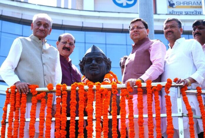 सीएम धामी ने स्व. हेमवती नंदन बहुगुणा की मूर्ति पर किया माल्यार्पण