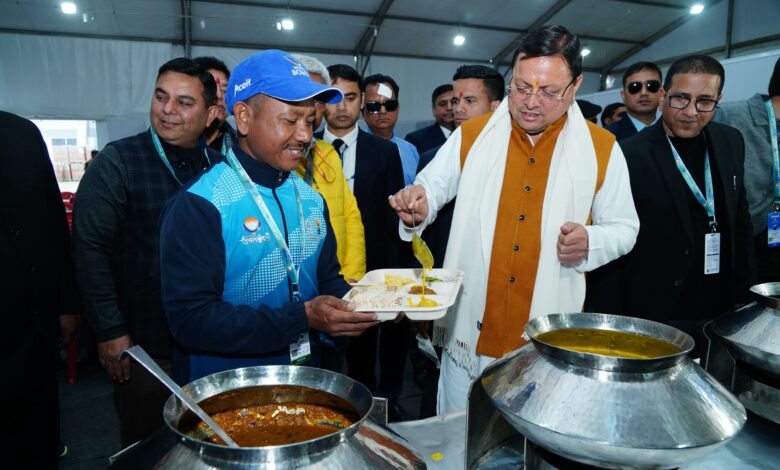 देहरादून। मुख्यमंत्री पुष्कर सिंह धामी ने दिल्ली से देहरादून आते ही रायपुर स्थित महाराणा प्रताप स्पोर्ट्स स्टेडियम में 38वें राष्ट्रीय खेलों की विभिन्न व्यवस्थाओं का अवलोकन किया। इस अवसर पर मुख्यमंत्री ने भोजन व्यवस्थाओं का अवलोकन किया। उन्होंने खिलाड़ियों को भोजन परोसा और खिलाड़ियों के साथ बैठकर भोजन भी किया। मुख्यमंत्री ने विभिन्न खेल स्पर्धाओं में भाग ले रहे अनेक राज्यों खिलाड़ियों से बात कर उनका हौंसला भी बढ़ाया। इस अवसर पर उन्होंने शूटिंग रेंज का अवलोकन भी किया।