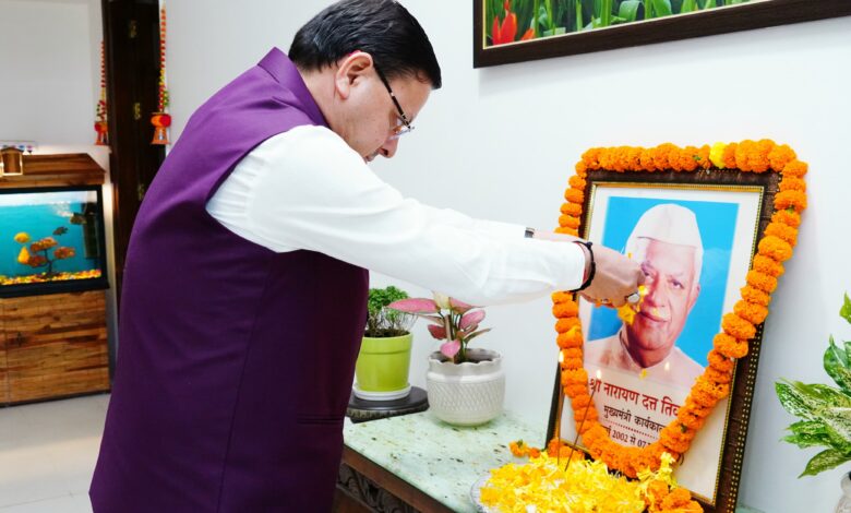 सीएम ने पूर्व मुख्यमंत्री नारायण दत्त तिवारी को जयंती और पुण्यतिथि पर श्रद्धांजलि अर्पित की