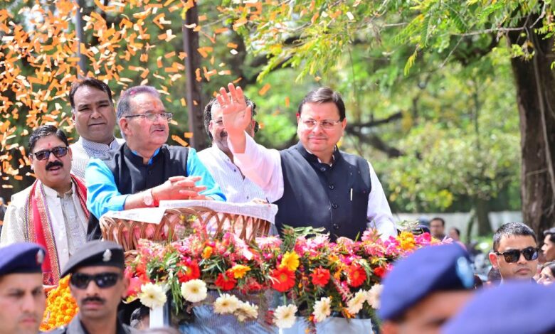 देहरादून। मुख्यमंत्री पुष्कर सिंह धामी ने शनिवार को सर्वे स्टेडियम में राज्य सरकार के सेवा, सुशासन और विकास के तीन साल पूर्ण होने के अवसर पर आयोजित कार्यक्रम में प्रतिभाग किया। इस अवसर पर उन्होंने जन समस्याओं के समाधान के लिए लगाए गए बहुउद्देशीय शिविर का अवलोकन किया। इससे पहले मुख्यमंत्री ने हाथीबड़कला से सर्वे स्टेडियम तक भव्य रोड शो में प्रतिभाग किया। कार्यक्रम के दौरान मुख्यमंत्री ने घोषणा की कि राज्य स्थापना वर्ष के 25 वर्ष पूर्ण होने के उपलक्ष्य में राज्य के शहरों में देवभूमि सिल्वर जुबली पार्क का निर्माण किया जायेगा।