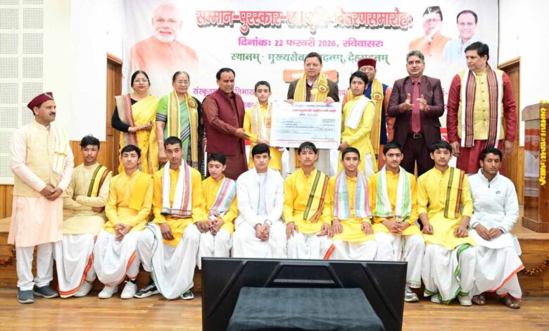 धामी ने संस्कृत छात्र प्रतिभा सम्मान कार्यक्रम में मेधावियों को किया सम्मानित