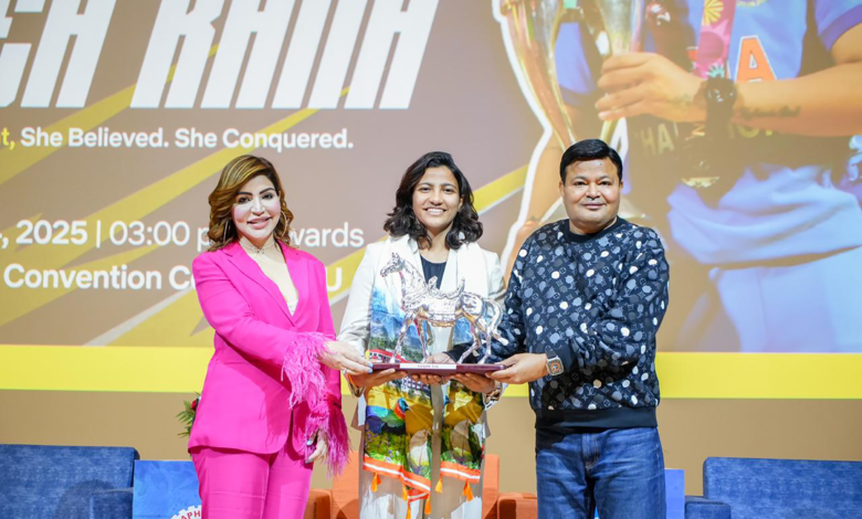 ग्राफिक एरा में वर्ल्ड चैम्पियन स्नेह राणा पर फूलों की बारिश