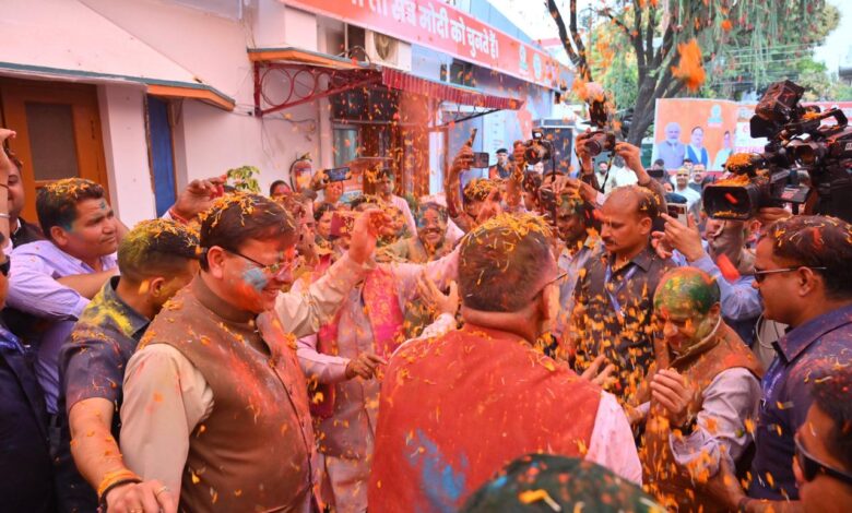 देहरादून। भाजपा प्रदेश मुख्यालय में आज मुख्यमंत्री पुष्कर सिंह धामी और प्रदेश अध्यक्ष महेंद्र भट्ट की मौजूदगी में होली की पूर्व संध्या को धूमधाम से मनाया गया। इस दौरान उन्होंने विशेष रूप से कार्यालय पहुंचे दिव्यांग जनों के साथ फूलों और रंगों से होली खेलकर शुभकामनाएँ दी। बलवीर रोड स्थित प्रदेश कार्यालय में आयोजित होली मिलन समारोह में सीएम और प्रदेश अध्यक्ष ने आज वरिष्ठ पदाधिकारी एवं कार्यकर्ताओं के साथ जमकर फूलों को होली खेली। इस दौरान सभी ने एक दूसरे को टीका लगाकर बधाई दी और लोकगीतों की धुन पर सीएम और प्रदेश अध्यक्ष के कार्यकर्ताओं के साथ नृत्य किया। उनके साथ सैकड़ों की संख्या में कार्यकर्ता और पदाधिकारी उत्साह के रंगों से सरोबार नजर आए। इस मौके पर मुख्यमंत्री धामी ने सभी कार्यकर्ताओं एवं प्रदेशवासियों को होलिका दहन और रंगों के पर्व होली की बहुत-बहुत शुभकामनाएं दी उन्होंने कहा, देश की तरह प्रदेश में भी लोकतंत्र का सबसे बड़ा उत्सव मनाया जा रहा है। ऐसे में उमंग, उल्लास और आपसी सद्भाव का त्योहार होली हम सब में एक नई ऊर्जा का सृजन करता है। उन्होंने उम्मीद जताई कि यह ऊर्जा आने वाले दिनों में हम सबको मजबूत, निर्णायक और सशक्त सरकार के लिए रिकॉर्ड मतदान में नजर आएगी।