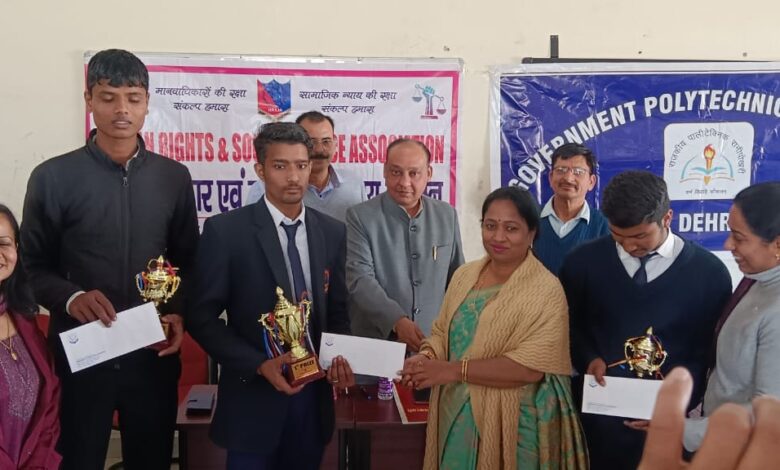 देहरादून। मानवाधिकार एवं सामाजिक न्याय संगठन द्वारा राजकीय पॉलिटेक्निक रानीपोखरी के घमंडपुर में साइंस क्विज प्रतियोगिता के विजेता छात्र-छात्राओं को संगठन के स्मृति चिन्ह एवं नकद पुरस्कार देकर सम्मानित किया गया। सांत्वना पुरस्कार भी दिये गये। कार्यक्रम का संचालन प्रदेश अध्यक्ष मधु जैन ने किया। इस अवसर पर बेटी बचाओ बेटी पढ़ाओ के पोस्टर से भी जागरूकता अभियान चलाया गया।