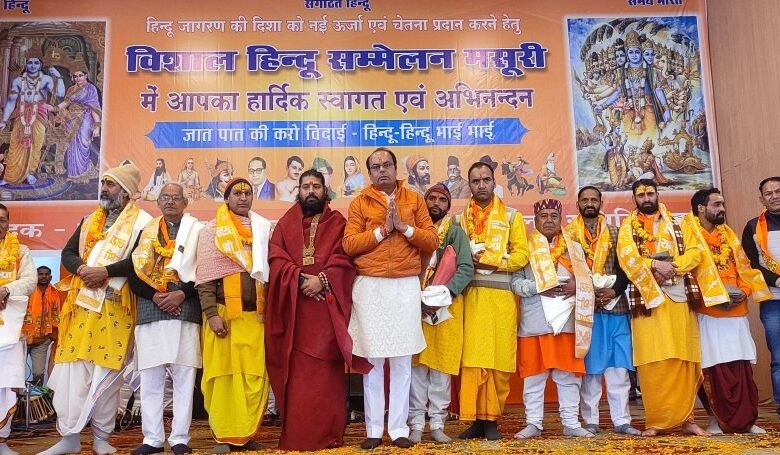 नगर पालिका टाउन हाल में आयोजित हिंदू सम्मेलन में मुख्य वक्ता महंत लोकेश दास ने कहा कि पूरे भारत में आरएसएस के स्थापना दिवस के मौके पर किया जा रहा है ताकि हिंदुओं को एक साथ ला सके व जाति में न बटें, सबको एक होकर रहना चाहिए ताकि सामाजिक समरसता बढ सके।जातियों में न बंटे। सभी ईश्वर की संतान है। जब भगवान ने कोई भेद भाव नहीं किया तो हम भी न करें। जिस तहर राम की जयंती मनाते है उसी तरह बाल्मीकि जयंती भी मनाये। ताकि पूरे भारत में संदेश जायैं संघ अपनी जगह कार्य करता है भाजा अपने स्तर पर कार्य करती है। जो देश धर्म के लिए कार्य करे हम उसके साथ है, हमें सेक्युलरों से खतरा है, हिंदु बनो या मुसलमान बनो लेकिन एक तरह रहे। हमें मौहम्मद दीपक की जरूरत नहीं है। भारत माता की रक्षा करना, हिदुओं की रक्षा व एकता के लिए कार्य करते है जबकि हमारे देश में कई गददार बैठे है। उन्होंने कहा कि इस मौके पर पालिकाध्यक्ष मीरा सकलानी ने कहा कि संघ ने सौ साल पूरे होने पर पूरे देश में हिदु सम्मेलन का निर्णय लिया था जिसके तहत यहां पर भी हिंदु सम्मेलन किया जा रहा है। नरेश जी ने जो संदेश दिया कि सभी को एकजुट होना है, यहां पार्टी विशेष की बात नहीं। सम्मेलन को विराट रूप दिया गया है जिसमें हर वर्ग की भागीदारी रही। उन्होंने कहा कि जो देश को नुकसान पहुचाने की कोशिश करेगा उसका विरोध किया जायेगा। उन्होंने कहा कि मसूरी जैसे छोट शहर में इतना बड़ा सम्मेलन आयोजित किया गया जिससे ऐसा लगा कि लोग सनातन संस्कृति को आगे बढाने का कार्य कर रहे हैं। इस मौके पर सामाजिक कार्यकर्ता निधि बहुगुणा ने भी अपने विचार व्यक्त किए। इस मौके पर शहर के विभिन्न वर्गों, के लोगों को भी सम्मानित किया गया। वहीं भजनों के आयोजन के साथ ही झुमैलो ग्रुप ने मां नंदा देवी राज जात यात्रा नृत्य नाटिका की मनमोहक प्रस्तुति दी। इस मौके पर नरेश, भाजपा मंडल अध्यक्ष रजत अग्रवाल, कार्यक्रम संयोजक मोहन पेटवाल, उपाध्यक्ष अरविंद सेमवाल, भाजपा प्रदेश मंत्री नेहा जोशी, भाजयुमो प्रदेश मंत्री आर्यन देव उनियाल, सहित बड़ी संख्या में हिंदू मौजूद रहे।