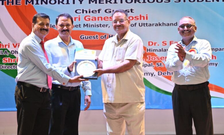 देहरादून। कैबिनेट मंत्री गणेश जोशी ने राजपुर रोड स्थित सेंट जोसेफ अकादमी स्कूल देहरादून में आई०सी०वाई०फ० (इंडियन क्रिस्चियन यूथ फेडरेशन) द्वारा आयोजित उपलब्धि पुरस्कार वितरण कार्यक्रम में मुख्य अतिथि प्रतिभाग किया। इस दौरान कैबिनेट मंत्री गणेश जोशी ने सामाजिक क्षेत्र उत्कृष्ट कार्य करने वाले लोगों तथा प्रतिभावान छात्र छात्राओं को पुरस्कार वितरित कर सम्मानित किया।