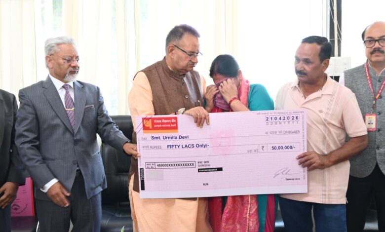 मंत्री जोशी ने उपनल कर्मचारी के परिजनों को 50 लाख की बीमा राशि का चैक प्रदान किया