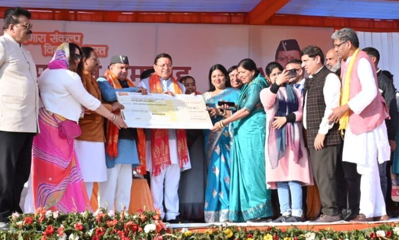 देहरादून। मुख्यमंत्री पुष्कर सिंह धामी ने सोमवार को मण्डी मैदान मंगलौर में आयोजित लाभार्थी सम्मान समारोह के अवसर पर 46.78 करोड़ की विभिन्न योजनाओं का लोकार्पण एवं शिलान्यास किया। जिसमें 45.62 करोड़ लागत की 21 योजनाओं का शिलान्यास तथा 1.16 करोड़ की 8 योजनाओं का लोकार्पण शामिल है। इस अवसर पर मुख्यमंत्री ने पीएम आवास योजना के लाभार्थियों को आवंटित आवासों की चाबी, गैस कनेक्शन के साथ स्वयं सहायता समूहों को दी जाने वाली धनराशि के चेक, पीएम मातृ वंदन योजना के पात्रों को महालक्ष्मी किट, प्रदान किये।