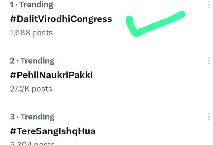 -सोशल मीडिया पर टॉप में ट्रेंड हुई दलित विरोधी कांग्रेस