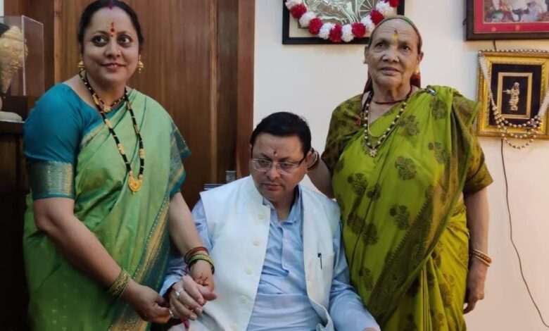 देहरादून। भाई बहन के असीम स्नेह और प्रेम के अटूट बंधन का पर्व रक्षाबंधन उत्तराखंड में भी धूमधाम से मनाया गया। बहनांे ने अपने भाइयों के कलाई पर राखी बांधी तो पंडितों ने भी अपने यजमानों की रक्षा के लिए उन्हें रक्षा सूत्र बांधे। वहीं, मुख्यमंत्री पुष्कर सिंह धामी ने भी अपनी बहनों से राखी बंधवाई। बता दें कि उत्तराखंड के मुख्यमंत्री पुष्कर सिंह धामी भाई-बहन के असीम स्नेह और प्रेम के प्रतीक रक्षाबंधन का पर्व मनाने अपने घर खटीमा पहुंचे। खटीमा स्थित आवास पर उनकी बहनों ने सीएम धामी के हाथों पर राखी बांधी। इस मौके पर सीएम धामी ने कहा कि आज बहनों ने रक्षा सूत्र बांधकर अपना आशीष दिया है। इस रिश्ते की गहराई और मिठास को शब्दों में नहीं बांधा जा सकता। मुख्यमंत्री पुष्कर सिंह धामी ने प्रदेशवासियों को भाई-बहन के स्नेह को समर्पित रक्षाबंधन के पर्व की बधाई दी। उन्होंने अपने बधाई संदेश में कहा है कि रक्षाबंधन का यह पर्व महिलाओं के प्रति आदर और सुरक्षा की भावना को सुदृढ़ करने का प्रतीक है। ईश्वर से प्रार्थना है कि राखी का पवित्र पर्व सभी के जीवन में सुख और समृद्धि लेकर आए।