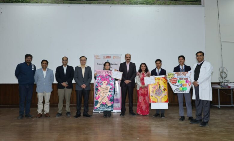 श्रीमहंत इन्दिरेश अस्पताल में स्कूली बच्चों ने पोस्टर से दिया कैंसर से लड़ने का संदेश