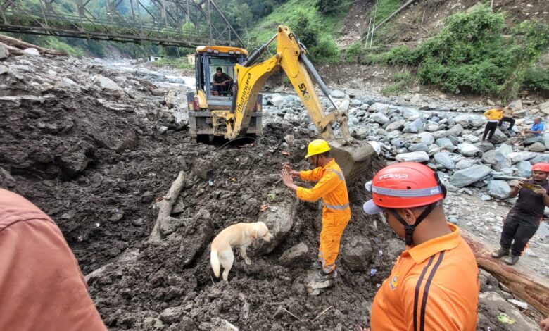 जिले के छेनागाड़ में आई आपदा को 12 दिन का समय बीत गया है। आपदा में लापता नौ लोगों का अब तक कोई भी सुराग नहीं लग पाया है। ऐसे में जिला प्रशासन ने एनडीआरएफ और खोजी कुत्तों की मदद ली है। सोमवार को खोजी कुत्तों के साथ पहुंची एनडीआरएफ की टीम ने मलबे को साफ किया। मलबे को साफ करने के बाद लापता लोगों की खोजबीन की जा रही है। एनडीआरएफ कमांडेंट सुदेश कुमार के कुशल निर्देशन और सहायक कमांडेंट सुनील कुमार के नेतृत्व में सब इंस्पेक्टर संजय भट्ट इस अभियान को अंजाम दे रहे हैं।