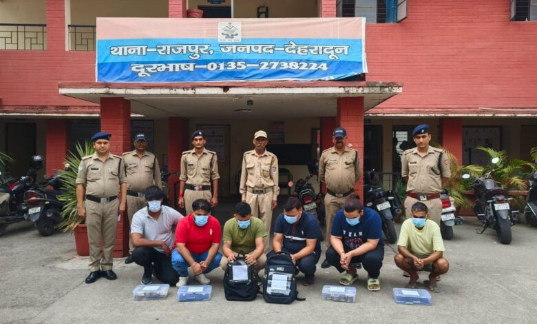 देहरादून। पुलिस ने अन्तर्राष्ट्रीय ऑनलाइन सट्टा खिला रहे छह लोगों को गिरफ्तार कर उनके कब्जे से दो लैपटॉप, 17 मोबाइल फोन पांच लाख 33 हजार रूपये नगद बरामद कर लिये। पुलिस ने सभी के खिलाफ मुकदमा दर्ज कर लिया है। प्राप्त जानकारी के अनुसार वरिष्ठ पुलिस अधीक्षक अजय सिंह को गोपनीय माध्यम से वर्तमान में चल रहे आईपीएल मैचो में ऑनलाइन सटृा लगाने वाले अर्न्तराष्ट्रीय गिरोह के सम्बंध में जानकारी प्राप्त हुई, जिस पर एसएसपी द्वारा तत्काल क्षेत्राधिकारी सदर के नेतृत्व में थाना राजपुर पर अलग-अलग पुलिस टीमों का गठित की गई, गठित टीमों द्वारा राजपुर क्षेत्रान्तर्गत कोजी नेस्ट होम स्टे निकट जीआरडी कॉलेज राजपुर रोड के किनारे स्थित एक फ्लैट में दबिश देते हुए आईपीएल मैचो में ऑनलाईन सटृा लगा रहे छह लोगों को गिरफ्तार किया गया। पूछताछ में उनके द्वारा अपना नाम चेतन शर्मा पुत्र स्वर्गीय लब्बा राम शर्मा, शक्ति सिंह पुत्र कौशल सिंह , धीरज शर्मा पुत्र स्वर्गीय अशोक शर्मा, निशांत पुत्र राजकुमार, करण पुत्र अनिल कुमार, सोहन सिंह पुत्र पुष्कर सिंह बताया गया। मौके पर पुलिस टीम द्वारा उनके कब्जे से आनलाईन सटृा लगाने में इस्तेमाल किये जा रहे कुल 02 लैपटॉप, 17 मोबाइल फोन, 5,33,500 रुपए नगद एवं अन्य इलैक्ट्रॉनिक उपकरण व अन्य सामग्री हुई बरामद हुई। जिनके खिलाफ पुलिस ने मुकदमा दर्ज कर लिया है। पूछताछ में उनकें द्वारा बताया गया कि ऑनलाइन सटृे का पूरा नेटवर्क दुबई से संचालित किया जाता है तथा वे लोग आनलाइन सटृा खिलाने दिल्ली से देहरादून आये थे, उनके द्वारा आईपीएल के चेन्नई सुपर किग्ंस तथा पंजाब किंग्स की टीमों के बीच चल रहे मैच में सट्टा खिलाया जा रहा था। वह मोबाईल फोन के जरिये ऑनलाइन सटृे की प्रतिबन्धित साइट सुपरस्ट्रीम ऑनलाइन व लाइन गुरु पर जाकर आँनलाईन सटृा खिलवाते है तथा लोगो से पैसे लेकर बुकी का काम करते है। सट्टे की सारी धनराशि ऑनलाईन गूगल पे व नगद रुपए के माध्यम से ली जाती है। आज भी उनके द्वारा आईपीएल मैच में ऑनलाइन सटृा लगाकर लगभग 05 लाख 33 हजार रुपए का क्लैक्शन किया था तथा पूरे मैच में उनके द्वारा लगभग 01 करोड का क्लैक्शन किया जाना था, परन्तु मैच समाप्त होने से पूर्व ही पुलिस द्वारा उन्हें गिरफ्तार कर लिया गया है। वर्तमान में चल रहे आईपीएल मैचो के दौरान पिछले एक माह में उनके खातों मे करोडो रूपये के ट्राजेक्शन की पुलिस टीम को जानकारी प्राप्त हुई है। जिसके सम्बंध में विस्तृत जानकारी की जा रही है।