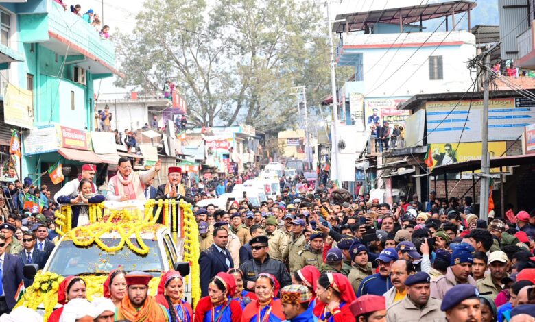 रुद्रप्रयाग। मुख्यमंत्री पुष्कर सिंह धामी रविवार को एक दिवसीय जनपद भ्रमण पर रुद्रप्रयाग पहुँचे। इस अवसर मुख्यमंत्री ने प्राचीन देवल से अगस्त्यमुनि के खेल मैदान तक आयोजित विशाल रोड शो कार्यक्रम में प्रतिभाग किया। इस दौरान यहां हजारों की संख्या में स्थानीय जनता ने मुख्यमंत्री श्री धामी का स्वागत किया। रोड शो में मुख्यमंत्री के साथ विधायक भरत चैधरी, विधायक केदारनाथ शैला रानी रावत, जिलाध्यक्ष भाजपा महावीर पंवार मौजूद रहे।