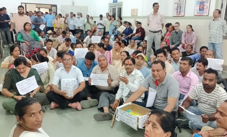 डॉ. सुशीला तिवारी मेडिकल कॉलेज में उपनल कर्मचारियों ने मांगी भीख
