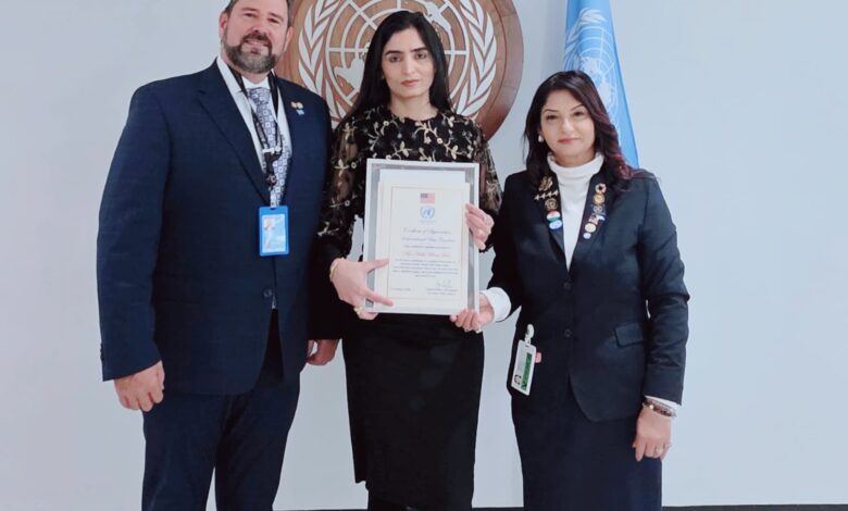 उत्तराखंड की निधि को यूएन सस्टेनेबल डेवलपमेंट गोल्स के साथ सम्मानित किया गया