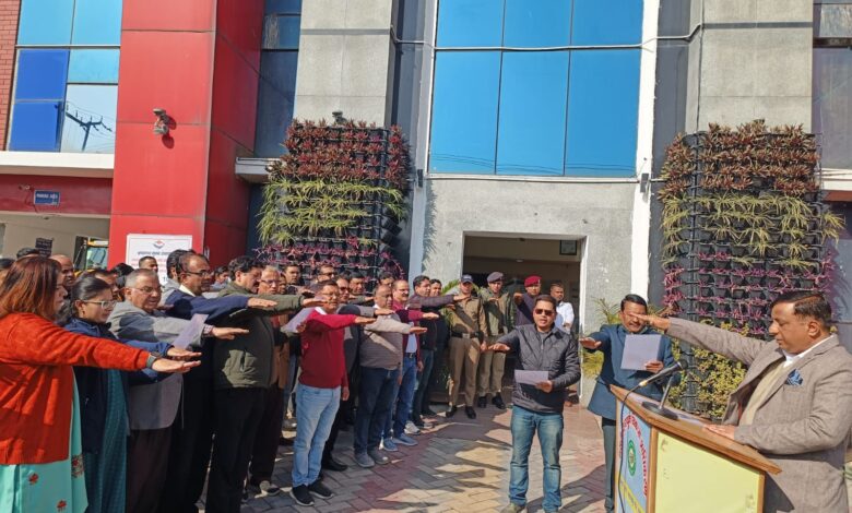 देहरादून। मसूरी-देहरादून विकास प्राधिकरण (मसूरी देहरादून विकास प्राधिकरण) में आज 25 जनवरी 2026 को मनाए जाने वाले 16वें राष्ट्रीय मतदाता दिवस के उपलक्ष्य में एक गरिमामय शपथ कार्यक्रम का आयोजन किया गया। कार्यक्रम में प्राधिकरण के उपाध्यक्ष बंशीधर तिवारी ने एमडीडीए के समस्त अधिकारियों एवं कर्मचारियों को मतदाता शपथ दिलाई। इस अवसर पर सचिव मोहन सिंह बर्निया सहित विभाग के वरिष्ठ अधिकारी व कर्मचारी उपस्थित रहे। आयोग के निर्देशानुसार लोकतांत्रिक मूल्यों के प्रति जागरूकता बढ़ाने, स्वतंत्र एवं निष्पक्ष मतदान की महत्ता को रेखांकित करने तथा सभी अधिकारियों-कर्मचारियों को शपथ दिलाने की अपेक्षा के अनुरूप एमडीडीए में विभिन्न गतिविधियाँ आयोजित की गईं।