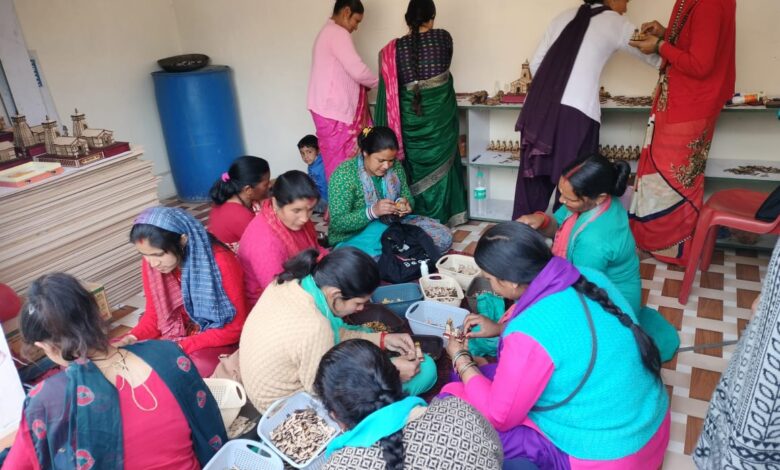 चार धाम यात्रा से जुड़े विभिन्न स्मृति चिन्ह बनाकर रोजगार कर रही महिलाएं