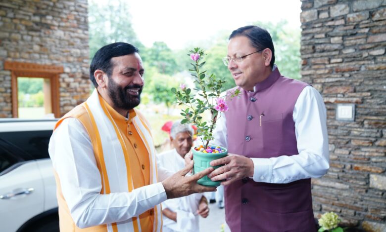 देहरादून। मुख्यमंत्री पुष्कर सिंह धामी ने रविवार को मुख्यमंत्री आवास में हरियाणा के मुख्यमंत्री नायब सिंह सैनी का स्वागत एवं अभिनंदन किया। इस अवसर पर मुख्यमंत्री पुष्कर सिंह धामी ने उन्हें चारधाम का प्रसाद एवं देवभूमि उत्तराखंड के अंब्रेला ब्रांड “हाउस ऑफ हिमालया“ के स्थानीय उत्पाद भी भेंट किए। मुख्यमंत्री पुष्कर सिंह धामी तथा हरियाणा के मुख्यमंत्री के मध्य दोनों राज्यों के हितों से संबंधित विभिन्न समसामयिक विषयों पर चर्चा हुई।